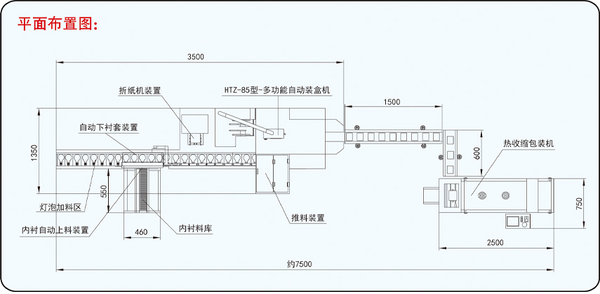 The production line is a conveyor belt production line modular combination, completing material cartoning and heat shrink packaging with optical, electrical, mechanical and pneumatic integration. It carries out synchronous production according to the PLC computer and integrated control system to form an automatic production line.